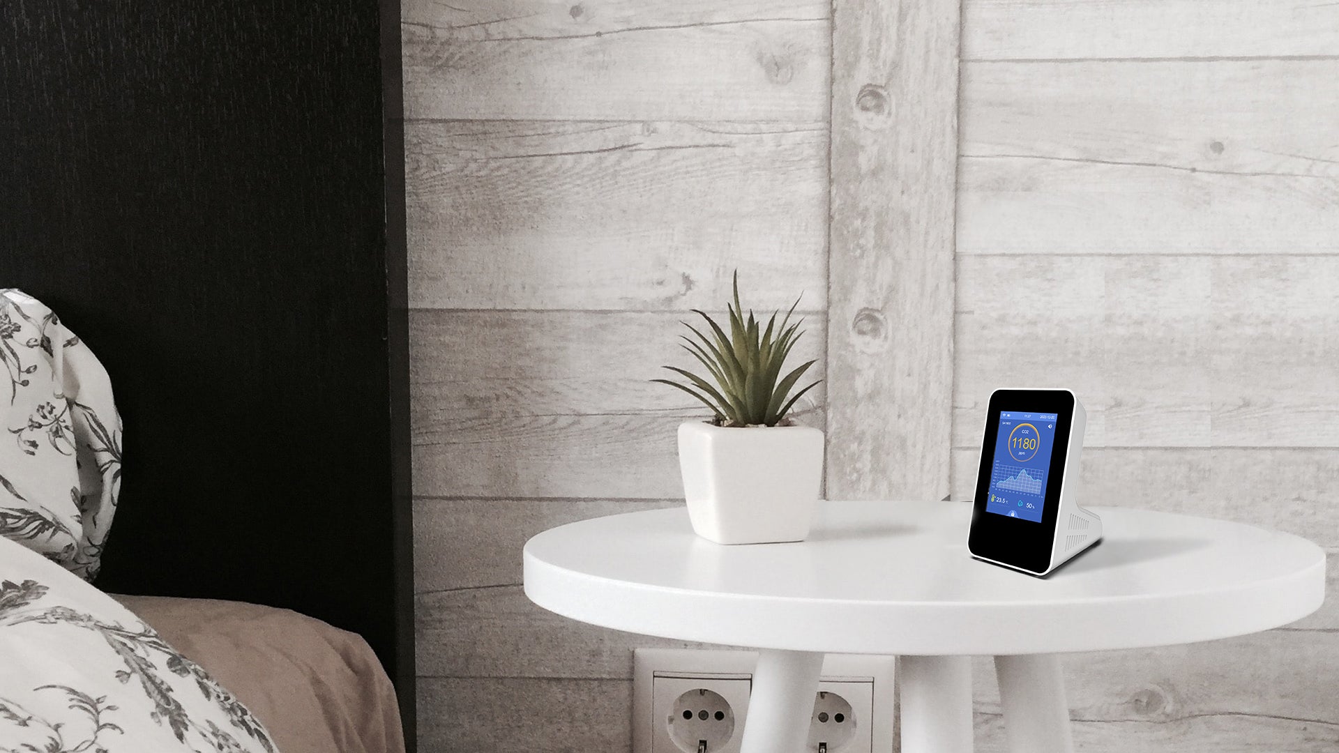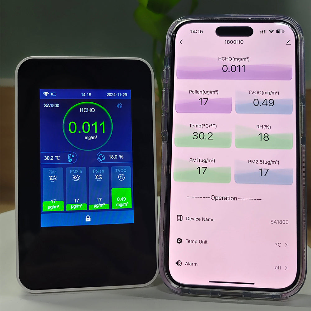The CLARITY 2 features CO2, temperature, humidity, particulate matter, VOC, and formaldehyde sensors. Battery powered and desk top mounted.